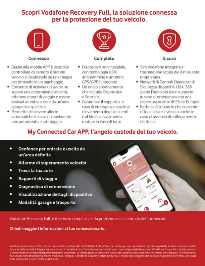 Un mix perfetto tra tecnologia ed applicazioni interattive vi permetterà di avere sempre sotto controllo il vostro veicolo, potrete visualizzare la posizione esatta del veicolo e l’immagine del luogo in cui si trova lo stesso in tempo reale.